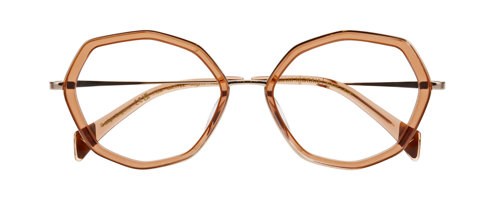 Fleur is an intriguing hexagonal shaped frame built in a combination of both metal and acetate. A single layer of transparent acetate in a two tone design offers an extra level of interest.
