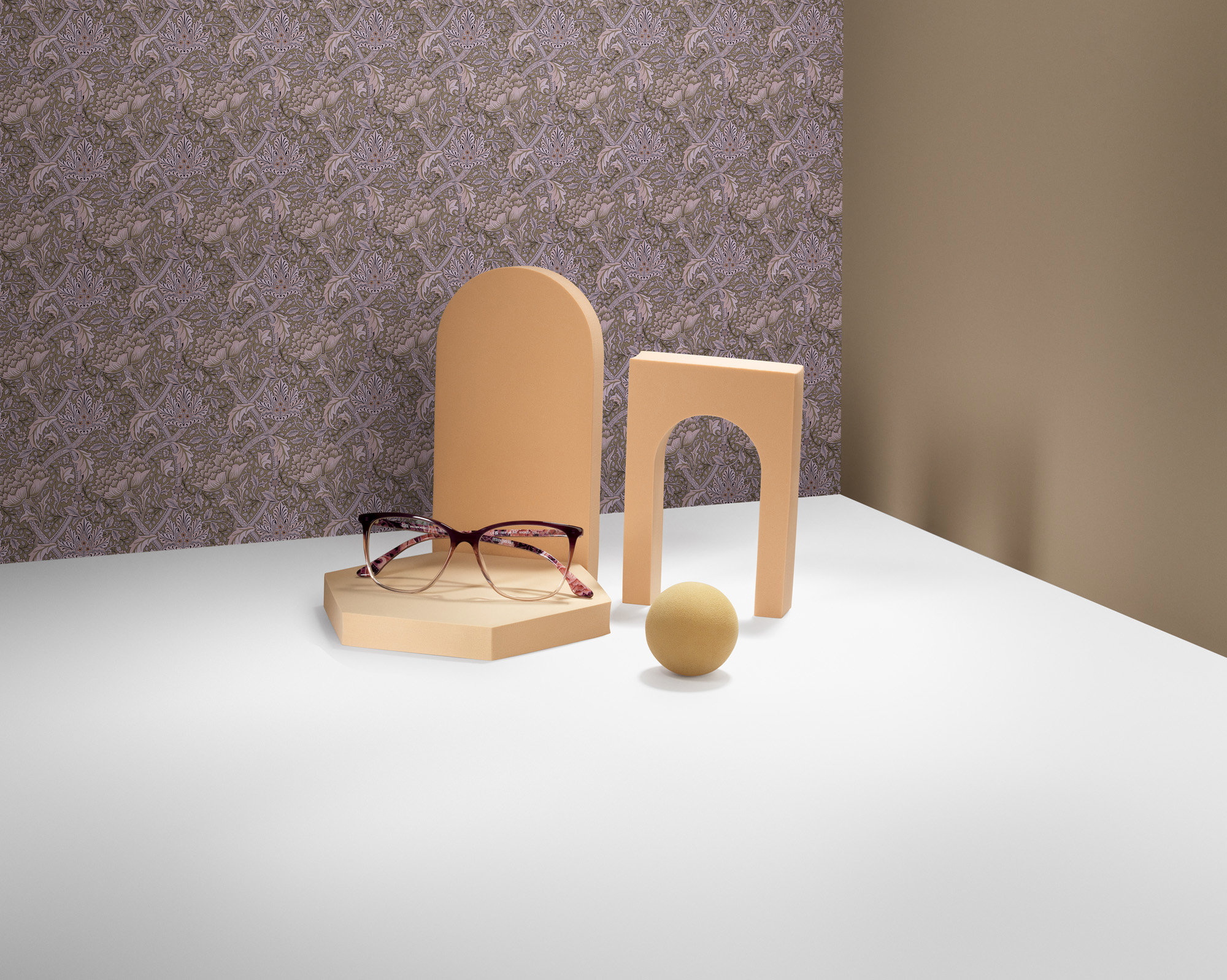 Inspired by a seventeenth-century velvet in the South Kensington Museum, this new berry version of Morris's originally named 'Windrush' design is a re-coloured interpretation used only in our latest Gallery eyewear collection.