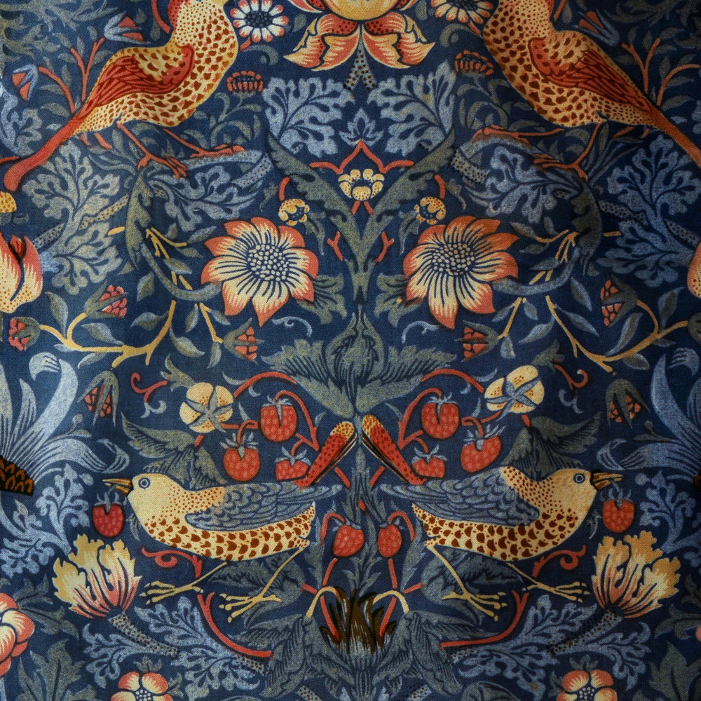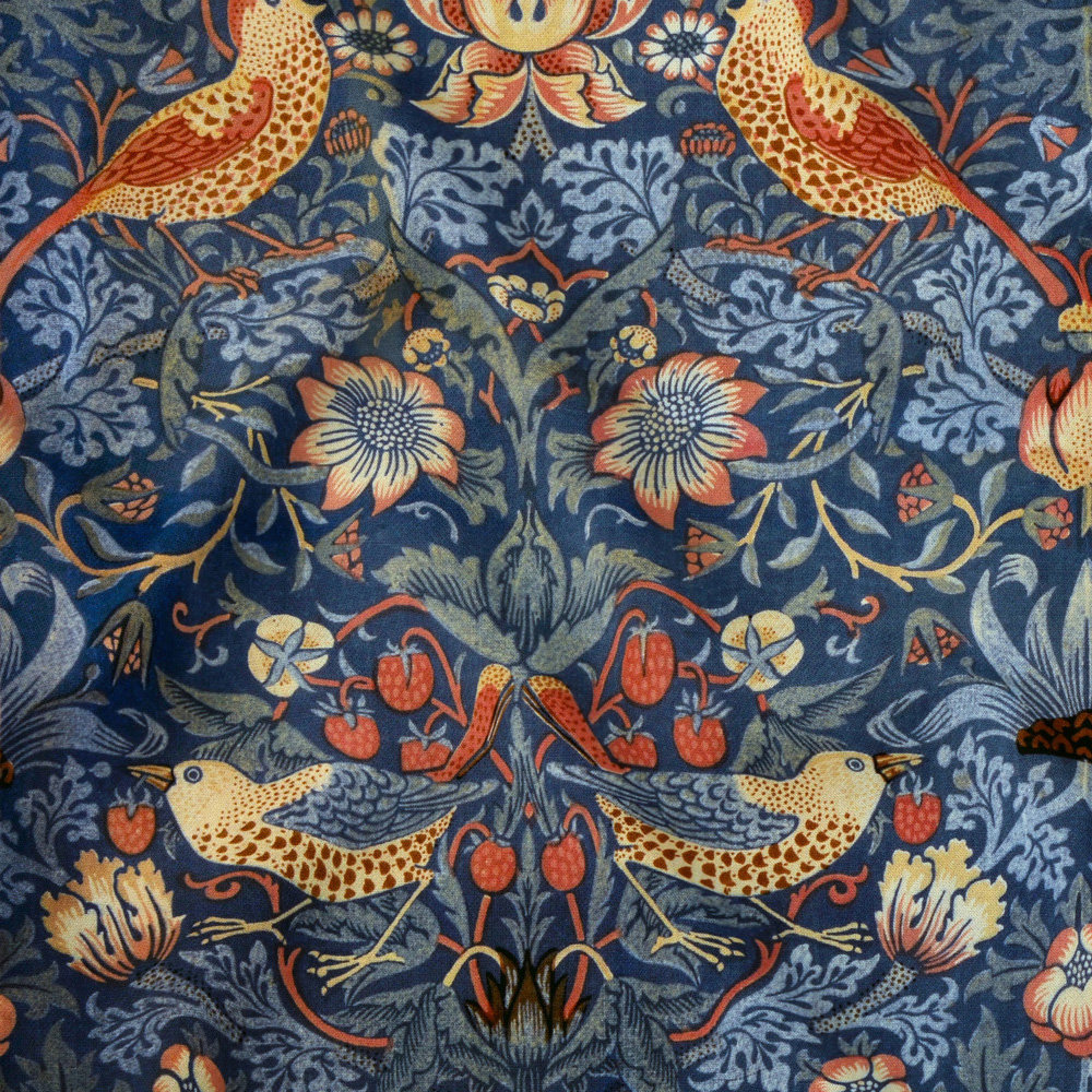 One of William Morris’s most expensive, technically challenging, yet commercially successful designs; Strawberry Thief was inspired by the thrushes that decimated the fruit in his garden at Kelmscott Manor in Oxfordshire.