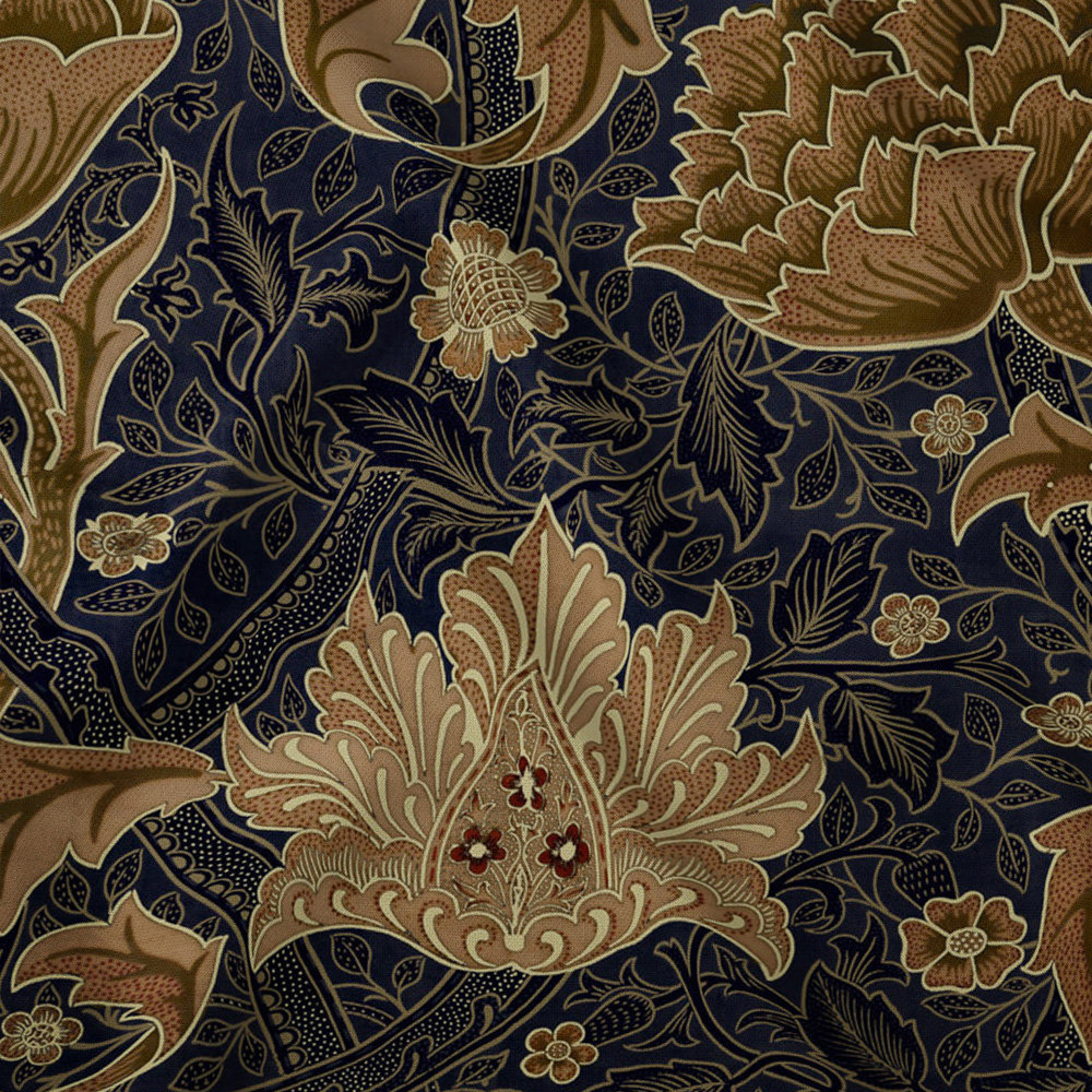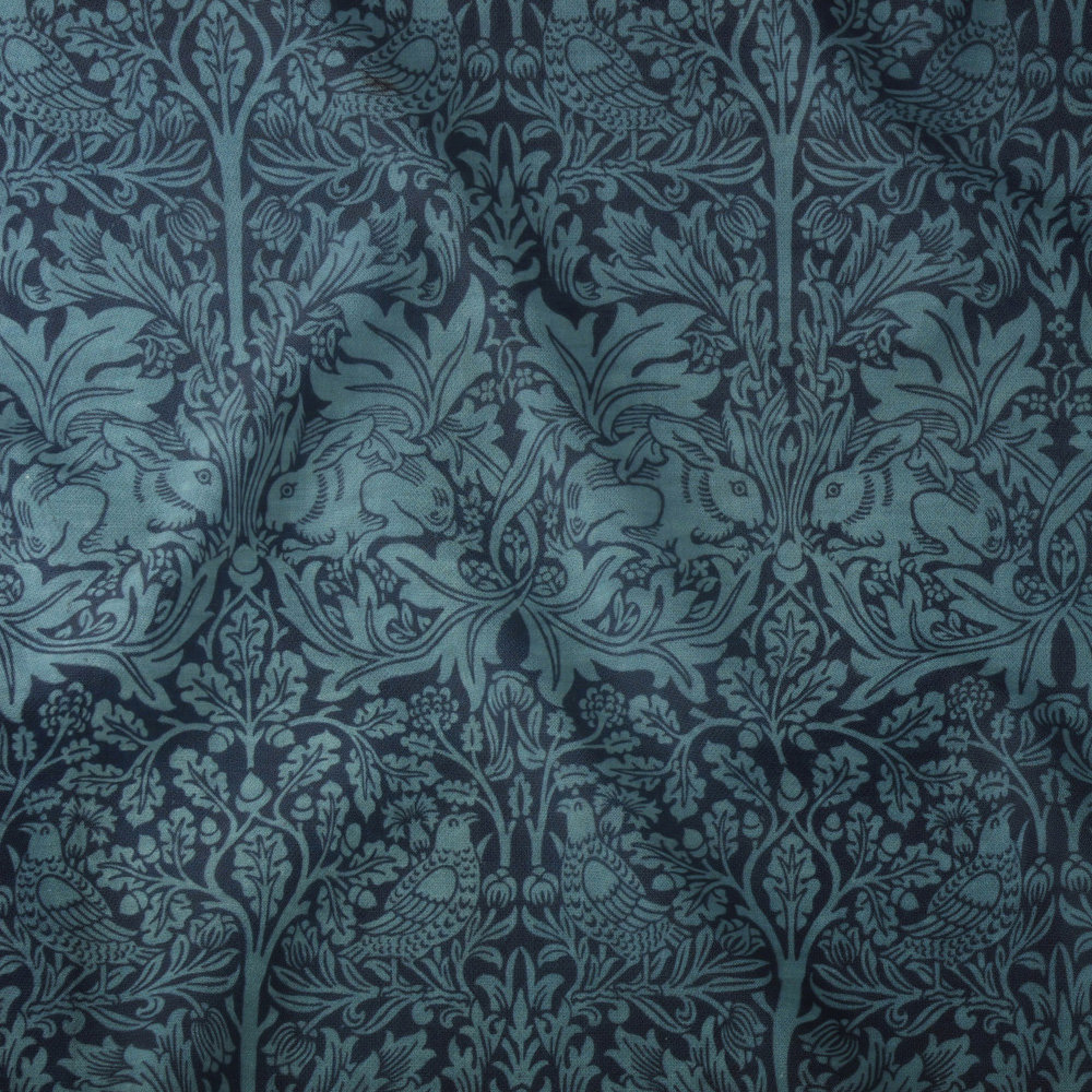 Morris conceived his passion for medieval textiles and decoration during his childhood. Designed specifically to utilize the indigo discharge method of printing, the authentic blue of this plant dye only emerges after three days, when it is lifted from the vat.